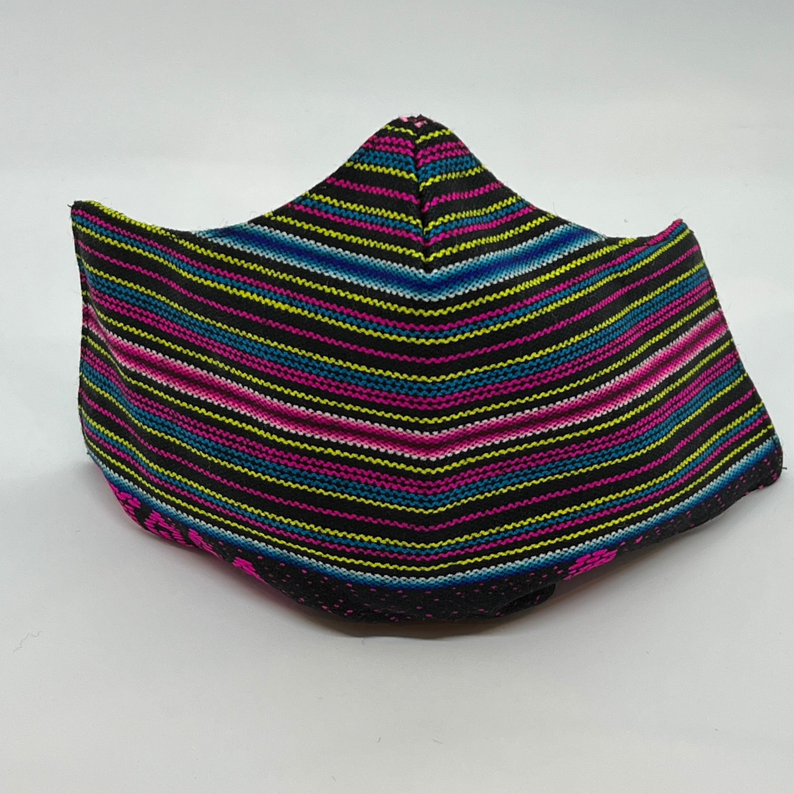 Handmade reusable/washable face mask adult size. This mask is made with two layers. The top outer layer is organic cotton, the bottom layer is a filter made of polyethylene non woven fabric.
